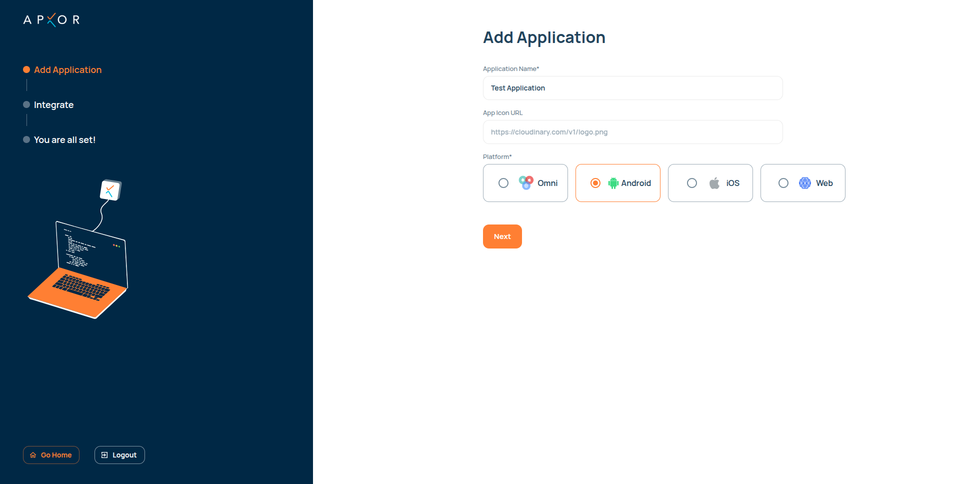 Enter your app name and app icon url to identify your app on the Apxor dashboard