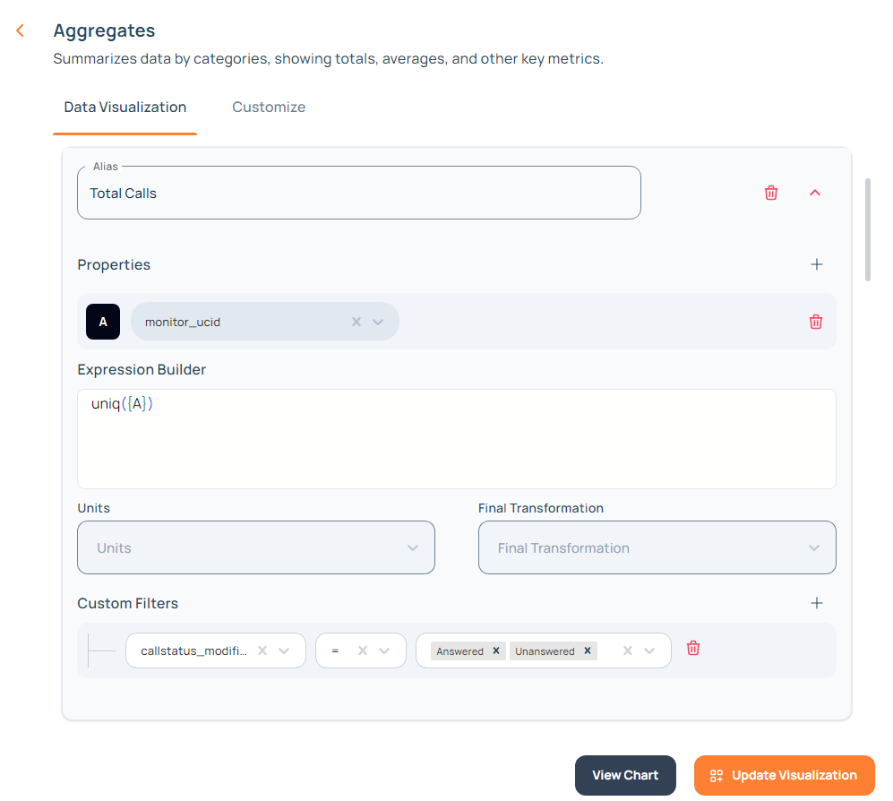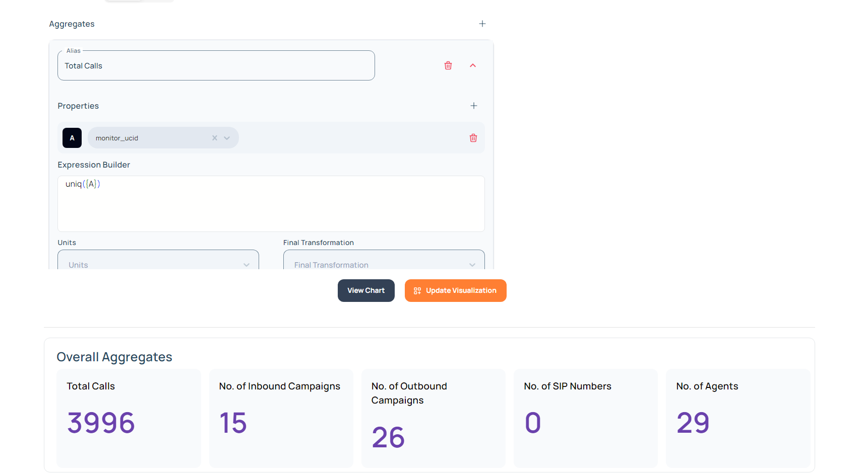 Select the unit from the dropdown for your aggregate value to be displayed on the dashboard.