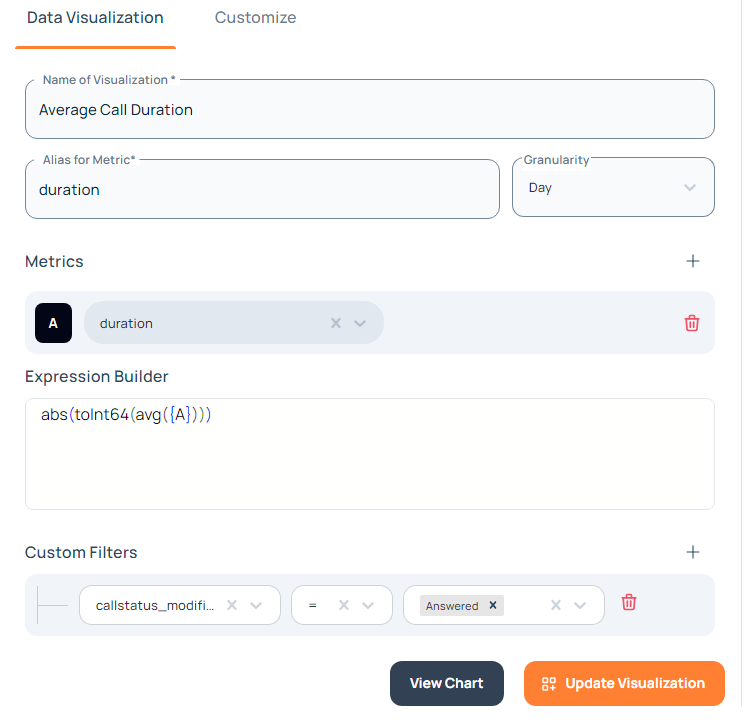 Enter the name of your Visualization widget, which will appear on your dashboard.