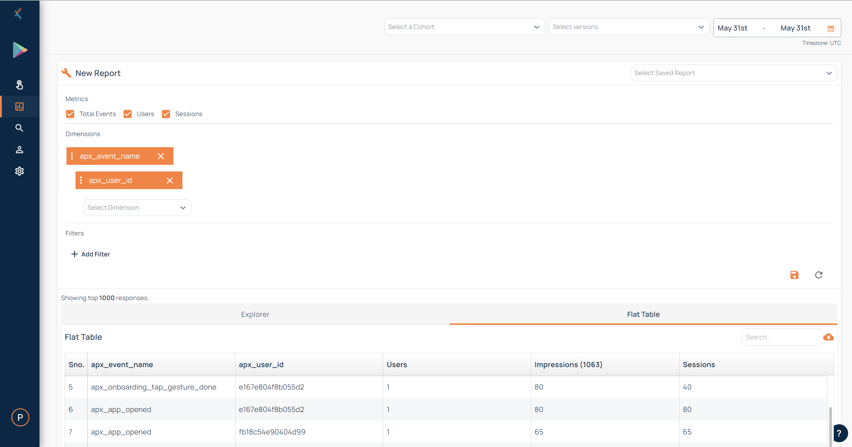 * Select the cohort, versions, and date range for which you want to download the custom report from the top right section.